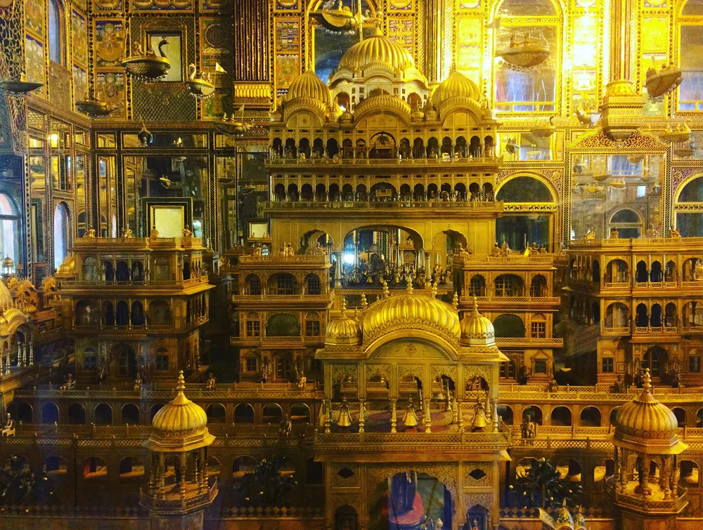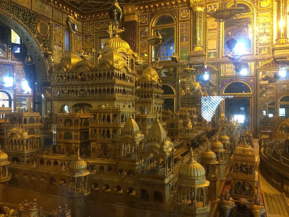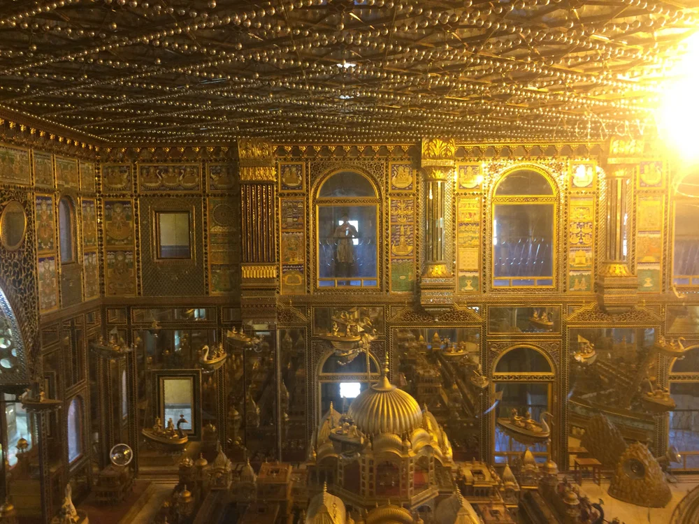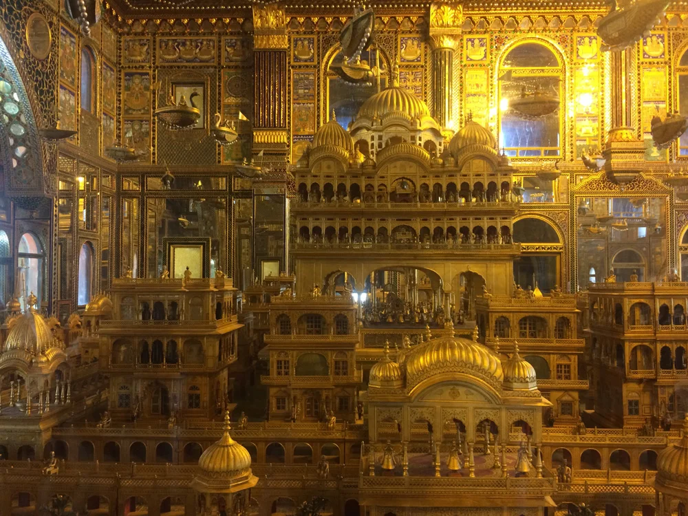 Though we wanted to spend more time there (and I wish we had!) we were off to our next stop on our road trip but first stopped along the way inside the city of Ajmer at the famous gold Jain temple called Soniji Ki Nasiyan. The temple that dates to the late 1800s was extraordinary and houses a 3D depiction, all encrusted in gold leaf, of the five "auspicious events" that include: conception, birth, renunciation, enlightenment, and salvation (moksha or nirvana). I'm not sure the pictures will do this justice at all - but it was an incredible thing to see in person. Jainism, for those who don't know, is an ancient Indian religion that is deeply rooted in Ahimsa - or non-violence - and is considered a non-orthdox, or nastika philosophy derived from Hinduism. Overall, Pushkar was a great cultural learning for us; can't wait to visit again and spend more time there.